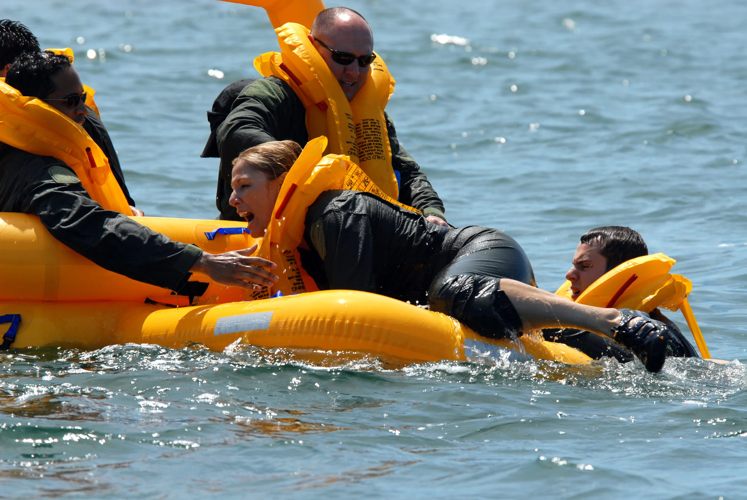 You know, before training, I always assumed landing in water would be the preferred option if one had to choose. I think I imagined water landings would be equivalent to plopping into a sea of marshmallows, and we’d all inflate our life jackets and float happily away into the ether. Along with the theme of the rest of this post, you can imagine, I was so, so very wrong. Water acts like cement when an aircraft is speeding toward it, and since planes don’t have bottoms like boats, and are intended to land using actual landing gear, the aircrafts tend to dig in at certain points - oftentimes at the engines - which then act like giant ice cream scoops of death and rip the plane into pieces. If you’re landing in water, you’re having a bad day. BUT IT’S OKAY, because we know where to safely evacuate you if it must happen, and what each plane will have a tendency of doing when it hits water. Also, please don’t inflate your life vest before exiting the plane. If you can’t imagine why, I invite you to do a short experiment: fill your sink with water, then take out a water bottle and insert two very floaty ice cubes inside. The water bottle is the body of the plane, and the opening is one of the doorways. Slowly “crash land” your “aircraft” into the sink and push down with the weight of what we can imagine would be people, luggage, metal, etc., until your bottle starts filling with water through the “door.” If those ice cubes were life vests, do you think that the people would be able to fight against the flotation, swim down, and reach the doors at ground level? Or would they be pushed up toward the ceiling and bob like terrified, frigid ice pops while the aircraft filled with water? Just DON’T INFLATE YOUR VEST BEFORE EXITING THE PLANE, okay?